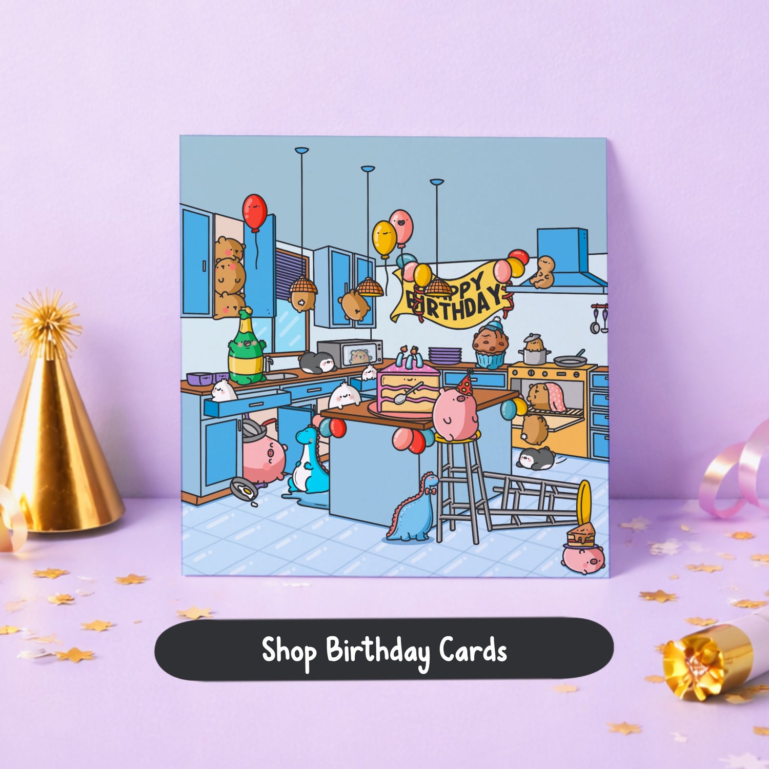 A tiny universe of puns, plush, and pure joy. Here, greeting cards giggle, stickers sparkle, and plushies come with personalities. Everything we make is lovingly designed to add a little whimsy to your world. Whether you’re sending a smile in the post or treating yourself to something squishy. Everything here is created with a sprinkle of silliness and a whole lot of heart. It’s feel-good gifting, happy mail, and everyday magic - all wrapped up in one very cute place.