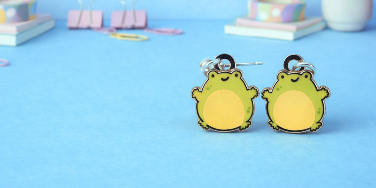 Our earrings are crafted from rose gold-plated enamel, giving them a soft, warm shine with playful illustrated details you’ll love.