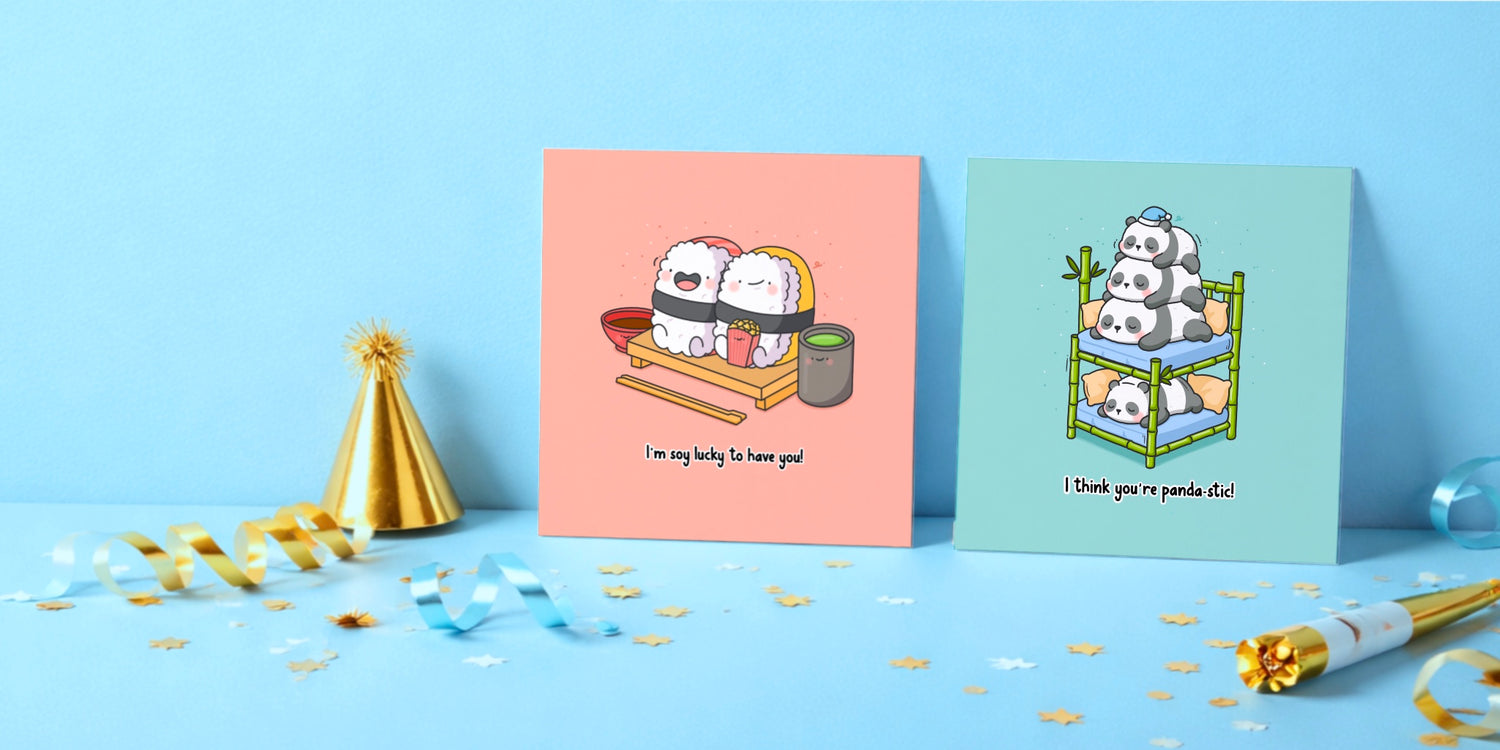 Our greeting cards are designed for all kinds of moments - from birthday cards and anniversary cards to love, friendship, thank yous, and just-because notes. Thoughtful, cute, and versatile, they’re made to suit both big celebrations and little everyday joys.