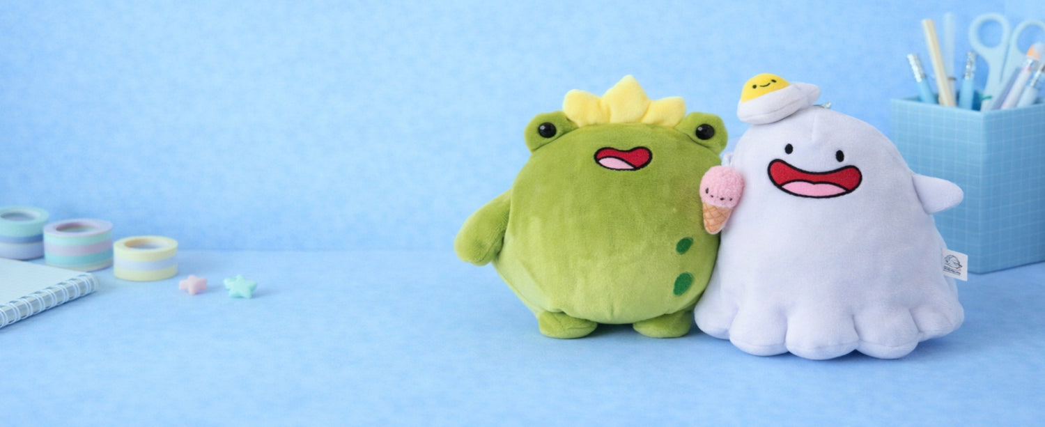 Our huggable plushies are made for cosy cuddles at home, while our plush keychains are mini companions designed to clip onto bags or keys and come along for the day.