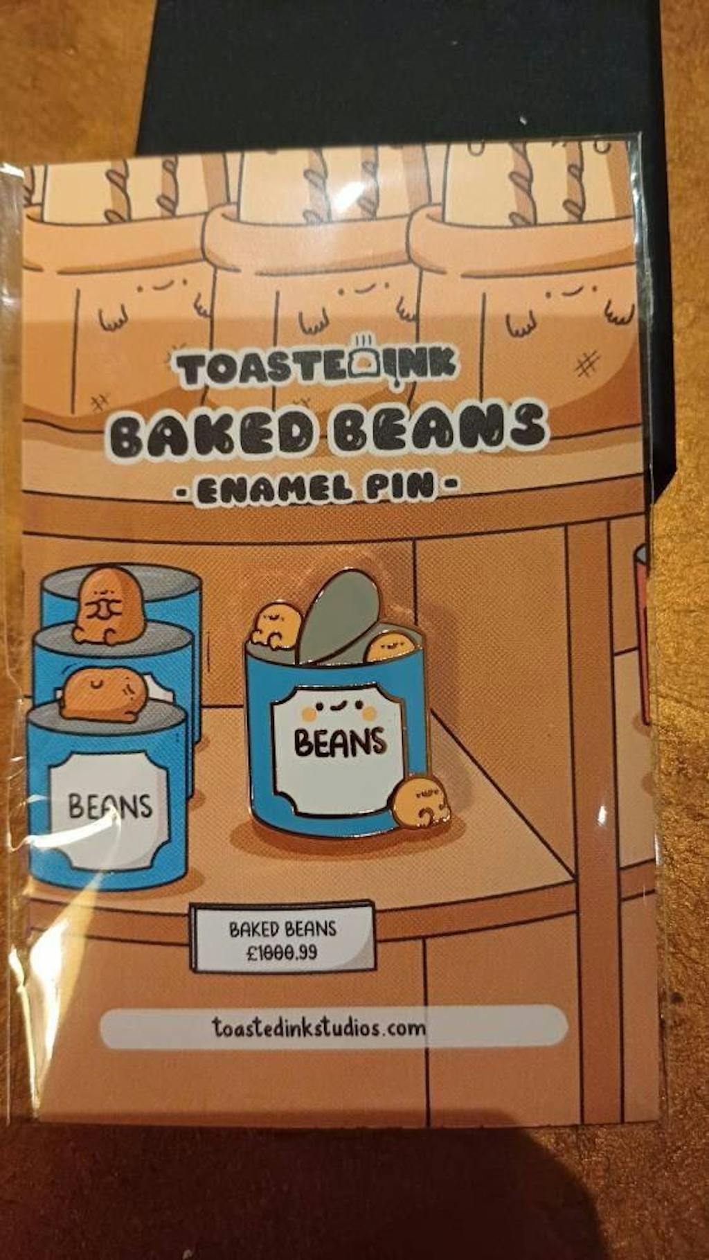 The beans are on the loose! However, isn't the design adorable? Add a dollop of baked beans to your potatoes, spread them on toast. Or why not adorn your bag or collar with them! Crafted with rose gold plated hard enamel, this enamel pin of a tin of beans is designed to brighten your day, with all those runaway beans eager to accompany you on your daily escapades.