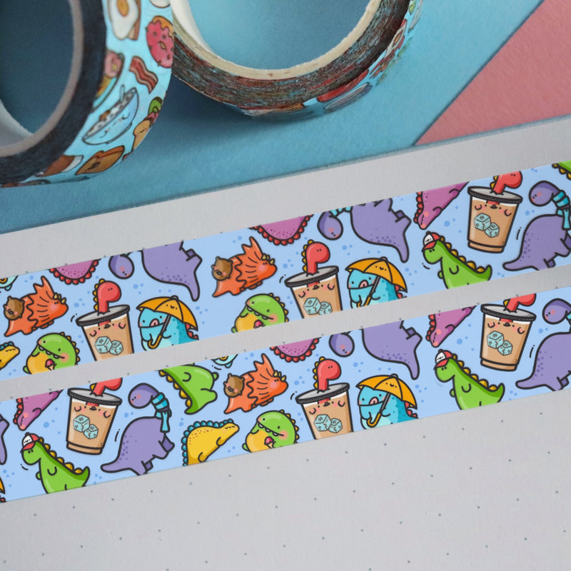 Rawr! Prepare not to be scared but to have your hearts completely melted. If you're looking for a fun way to decorate your planners and journals then you're going to love these dinosaur themed washi tapes. Filled with fun and cute dinosaur illustrations such as dinosaurs in coffee cups, sleeping dinosaurs and dinosaurs holding umbrellas. These washi tapes are here to brighten up your notebooks and journals, make you smile and add a whole lot of happiness to your stationery pieces.