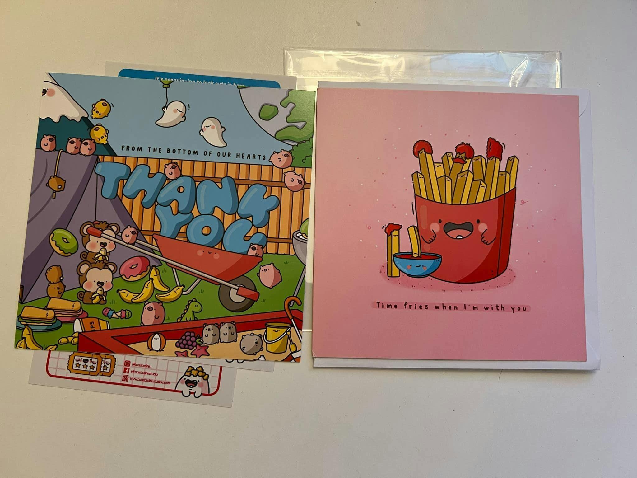 - One side left blank for your own sweet message: With a playful french fries print inside to surprise your recipient.