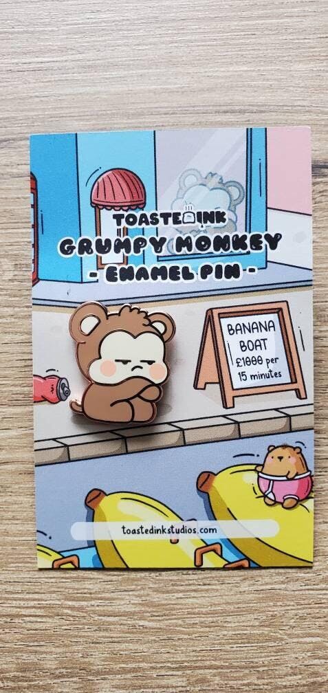 - Size: This cute grumpy monkey pin measures 1 inch.