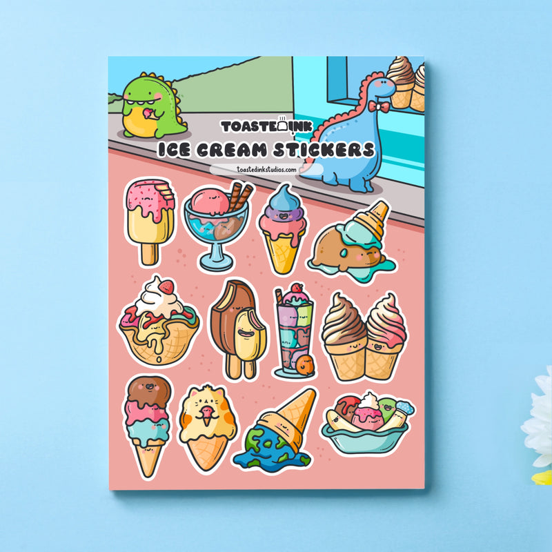 - Variety of cute designs: The ice cream sticker sheet features a delightful array of illustrations that are sure to charm and delight. With an abundance of adorable, whimsical characters packed onto a single page, you'll be hard-pressed to choose a favourite.