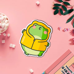 Cuddle up with our cosy Frog in a Yellow Hoodie Vinyl Sticker and let it be an adorable reminder of life's simple pleasures. Order now and bring some cheerfulness and warmth wherever you go!