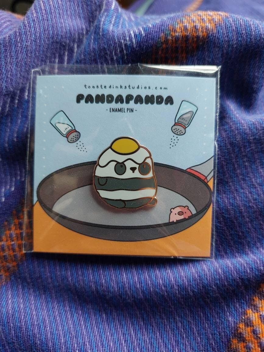 Wondering why this panda has a fried egg on his head, this cute panda enamel pin is made to bring a lot of joy into your life and is waiting to be adopted into a lovely new home. This adorable enamel pin is sure to melt hearts and bring a smile to anyone who sees it. It features an adorable panda sat staring up at his egg on his face. Whether you're a collector or just love pandas, this pin is a must-have for your collection. Its high-quality design and attention to detail make it a truly special piece that you'll love to show off.